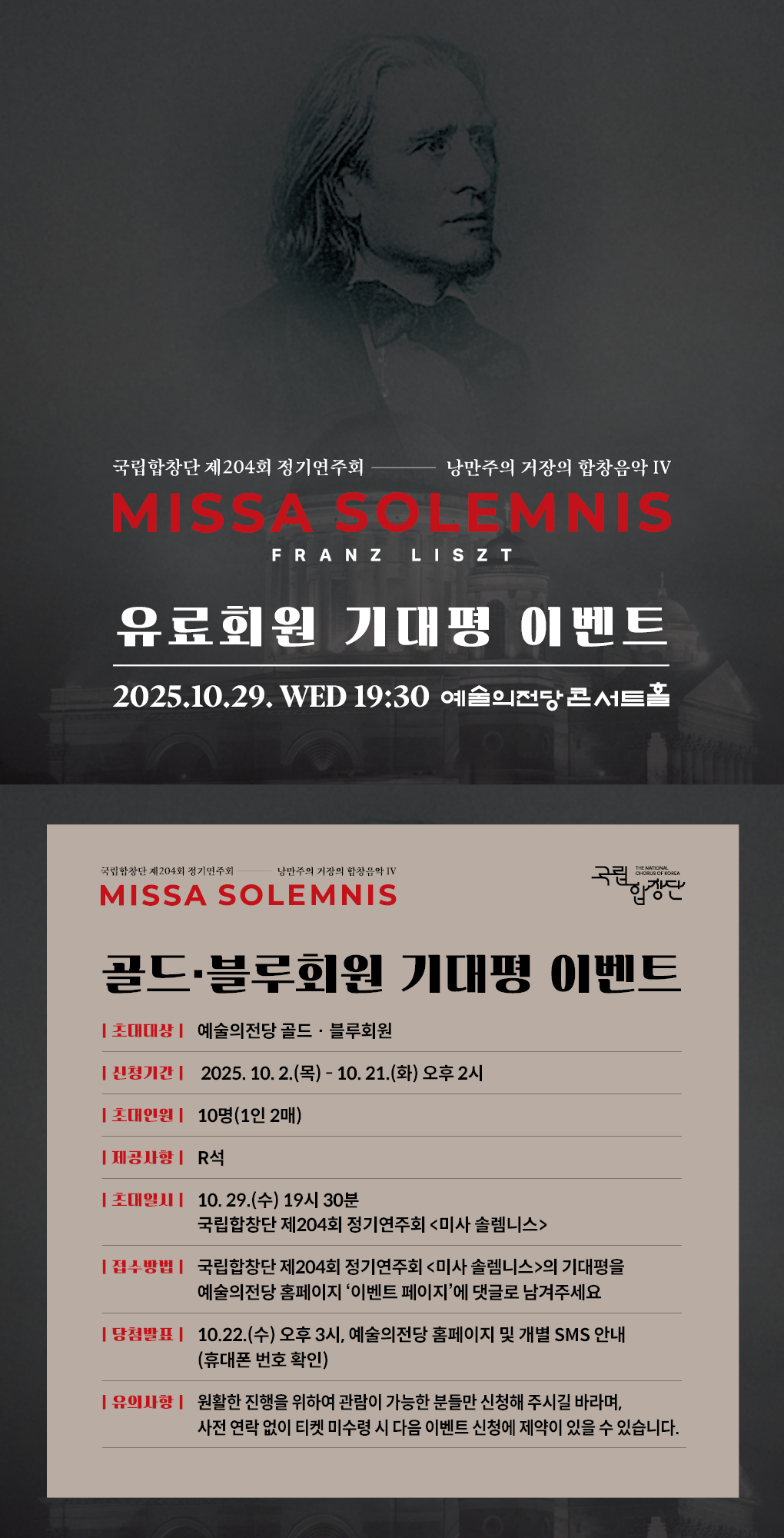 [골드·블루회원] 국립합창단 <미사 솔렘니스> 기대평 이벤트