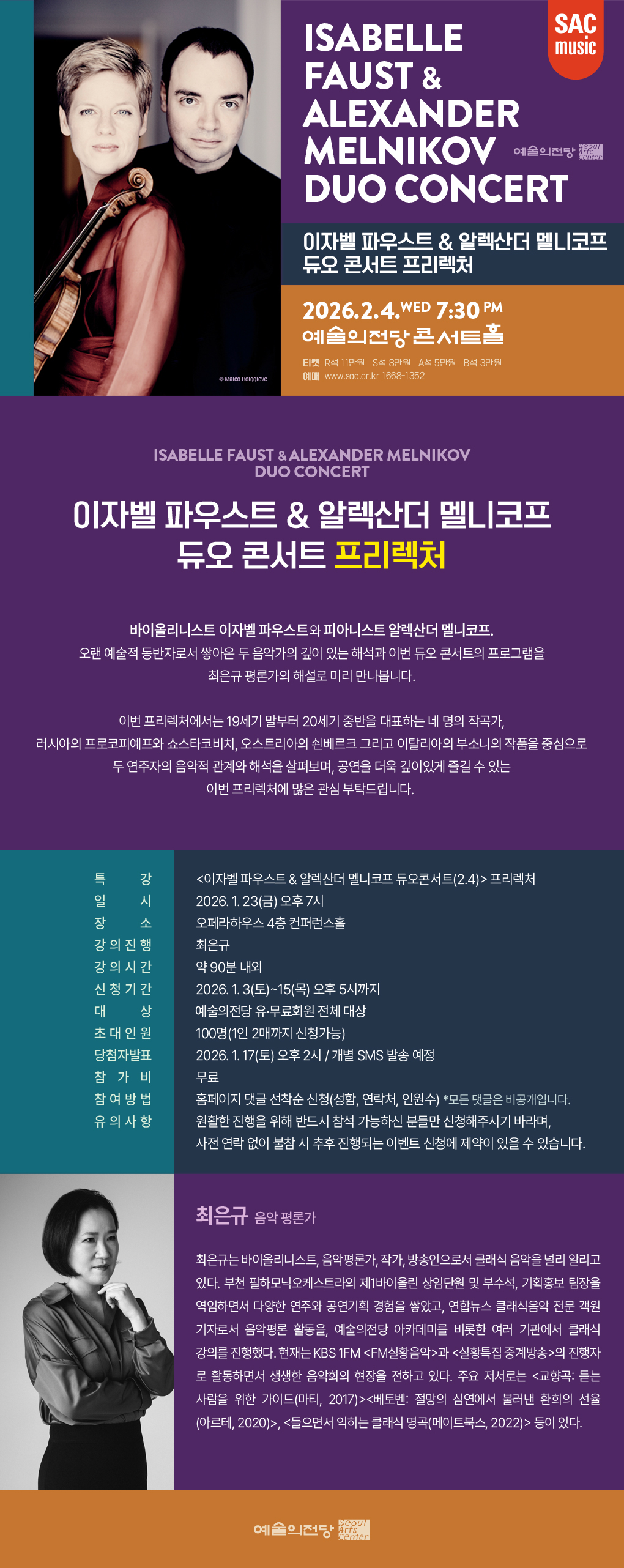 [유·무료회원] <이자벨 파우스트&알렉산더 멜니코프 듀오 콘서트> 프리렉처