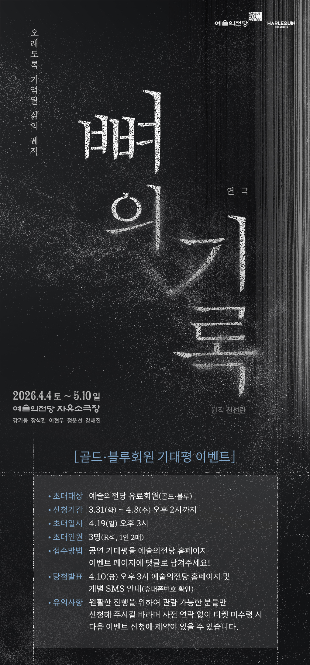 [골드·블루회원] 연극 <뼈의 기록> 기대평 이벤트