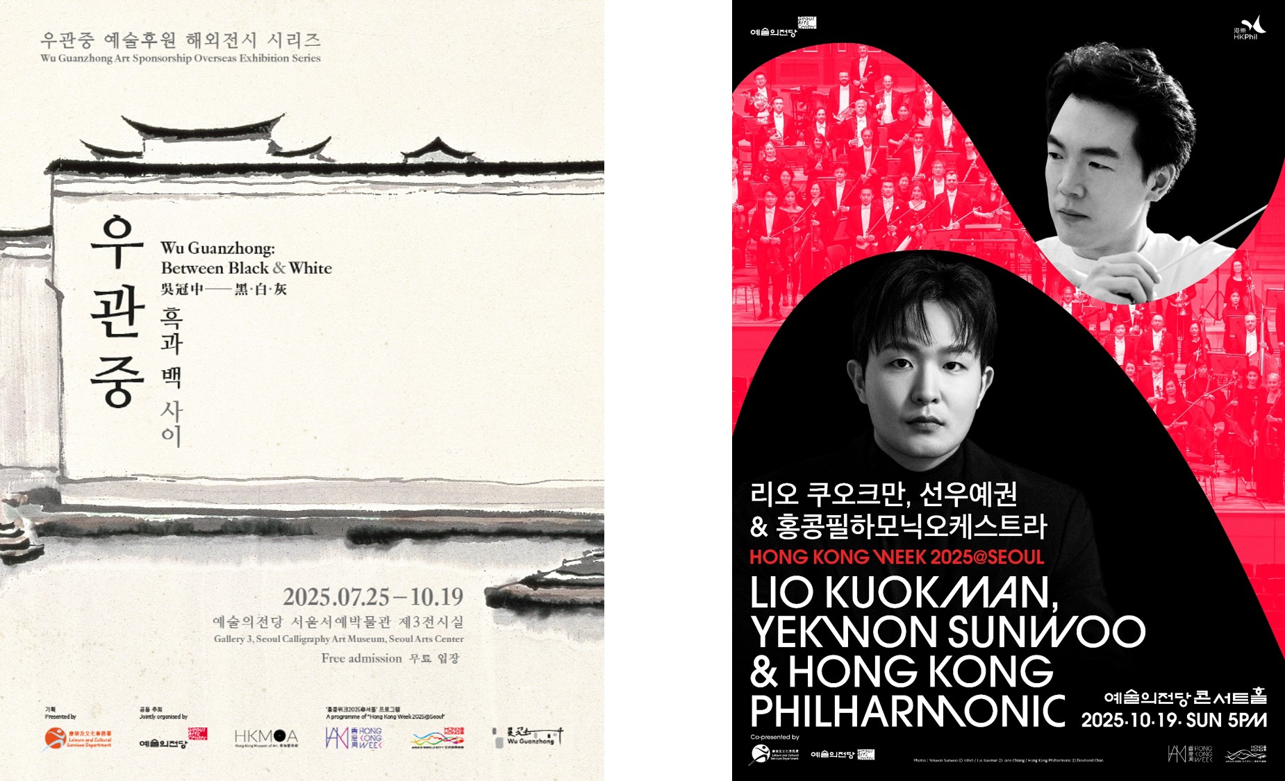 이번 전시와 공연은 예술의전당이 홍콩예술박물관 및 홍콩특별행정구 정부 여가문화서비스부와 공동 주최로 진행했으며, 서울에서 만나는 홍콩예술의 정수로서 2025 홍콩위크의 의미를 더욱 풍성하게 할 예정이다. 《우관중: 흑과 백 사이》는 무료로 관람할 수 있으며, <리오 쿠오크만, 선우예권 & 홍콩필하모닉오케스트라> 공연의 티켓 예매는 예술의전당 홈페이지(www.sac.or.kr), 콜센터(1668-1352), NOL 티켓을 통해 가능하다. 끝.