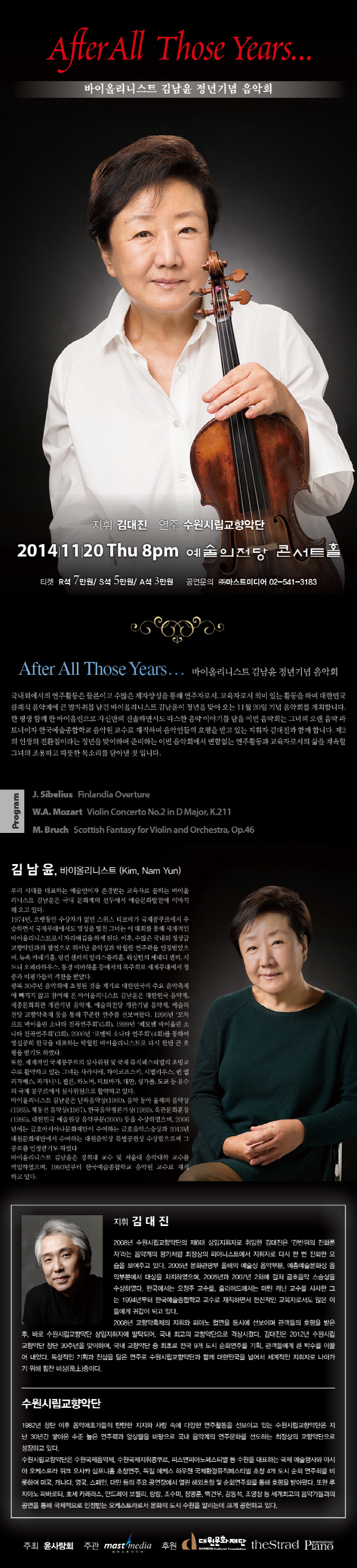 바이올리니스트 김남윤 정년 기념 음악회에 대한 관람평을 적어주세요.