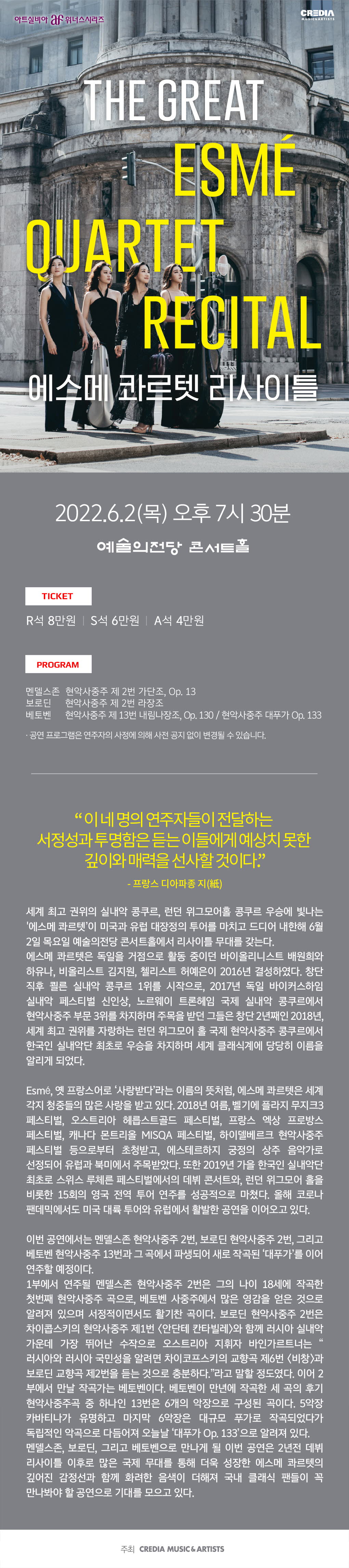 에스메 콰르텟 리사이틀에 대한 관람평을 적어주세요.