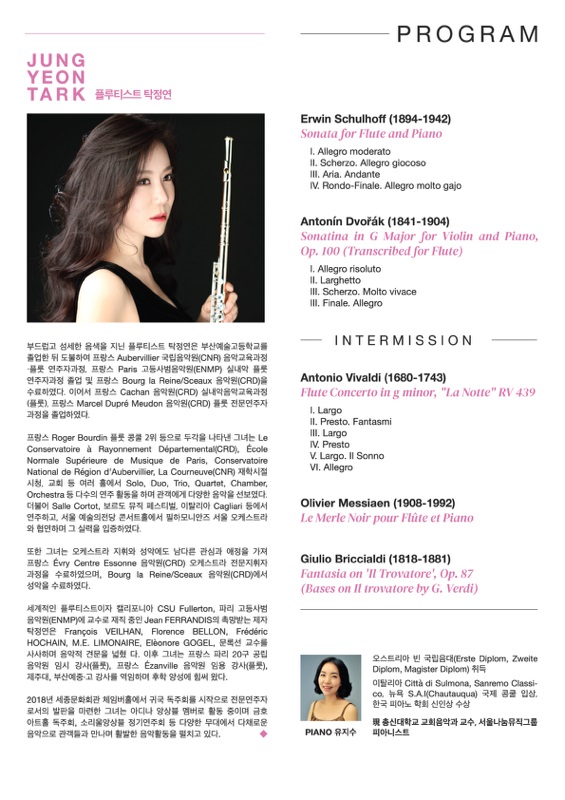 탁정연 플루트 독주회에 대한 관람평을 적어주세요.