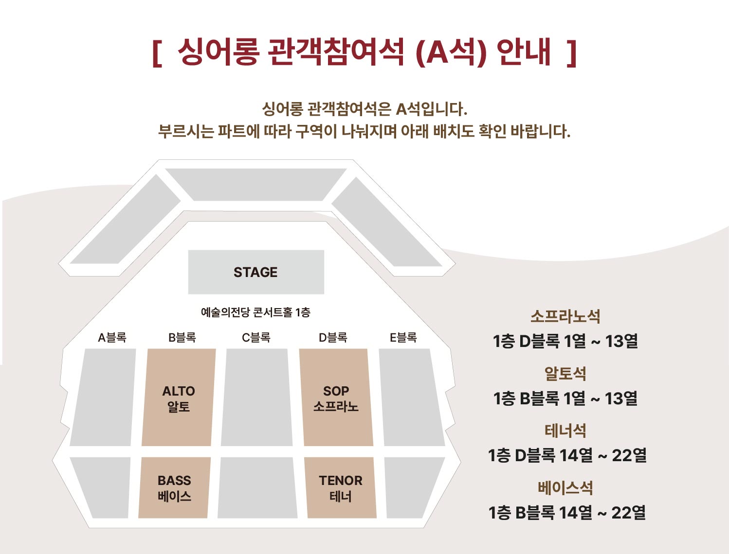함께 싱어롱에 참여하실 분은 A석을 구매해주세요