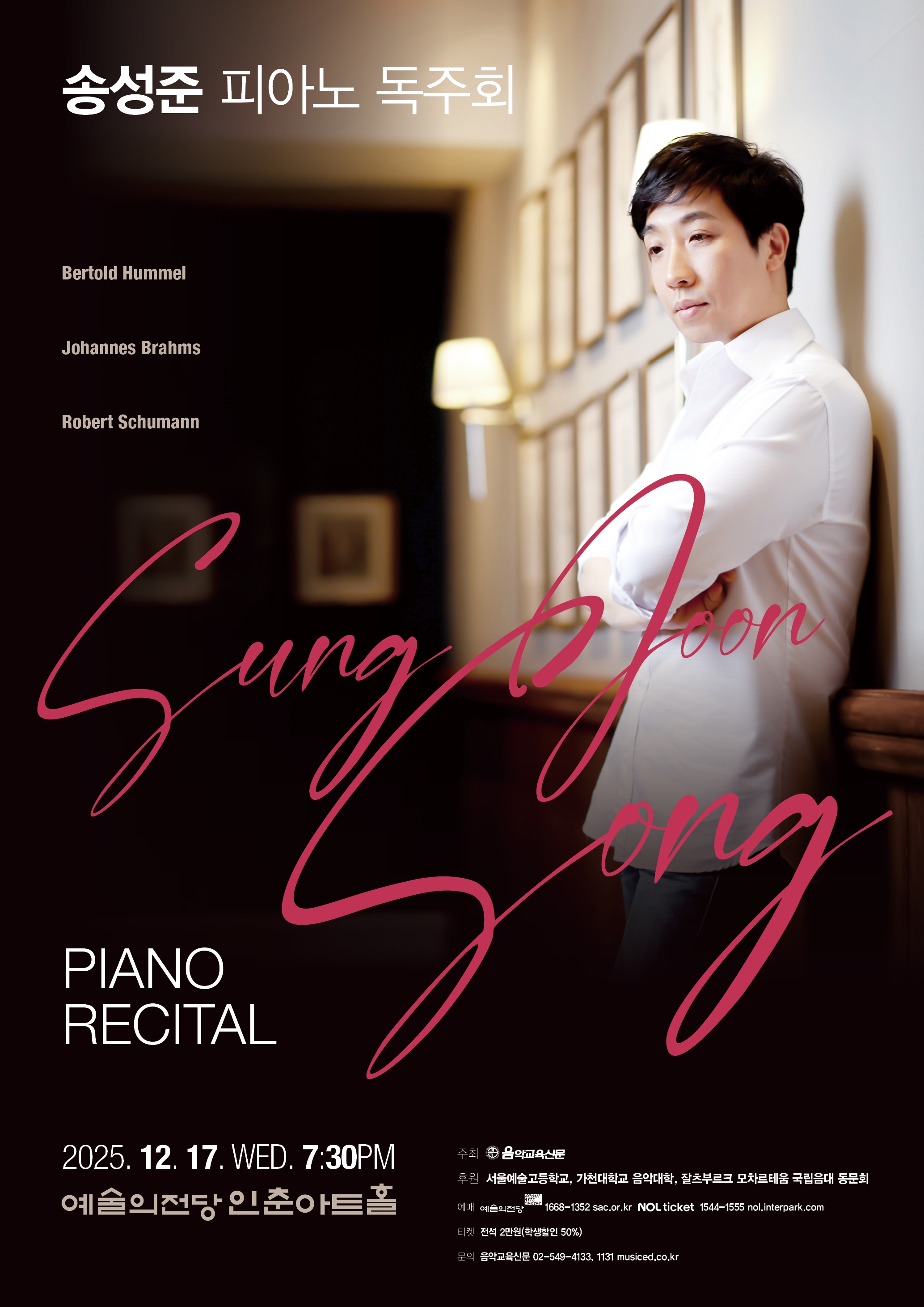 깊고 풍부한 울림과 섬세한 타건으로 주목받고 있는 피아니스트 송성준은 서울예술고등학교를 졸업한 후 경원대학교(현 가천대학교) 음악대학 피아노과를 실기 장학생으로 입학했다. 이후 동 대학을 수석으로 졸업한 그는 도오하여 음악의 본고장인 오스트리아의 짤츠부르크 모짜르테움 국립음악대학 (Universitaet Mozarteum Salzburg)에서 전문연주자 과정 (Erstes Diplom), 과 최고연주자 과정 (Zweites Diplom) 을 최우수성적 (mit Auszeichnung) 으로 마치고 그 후 최종 마기스터(Magister)예술 학위를 취득하였다.