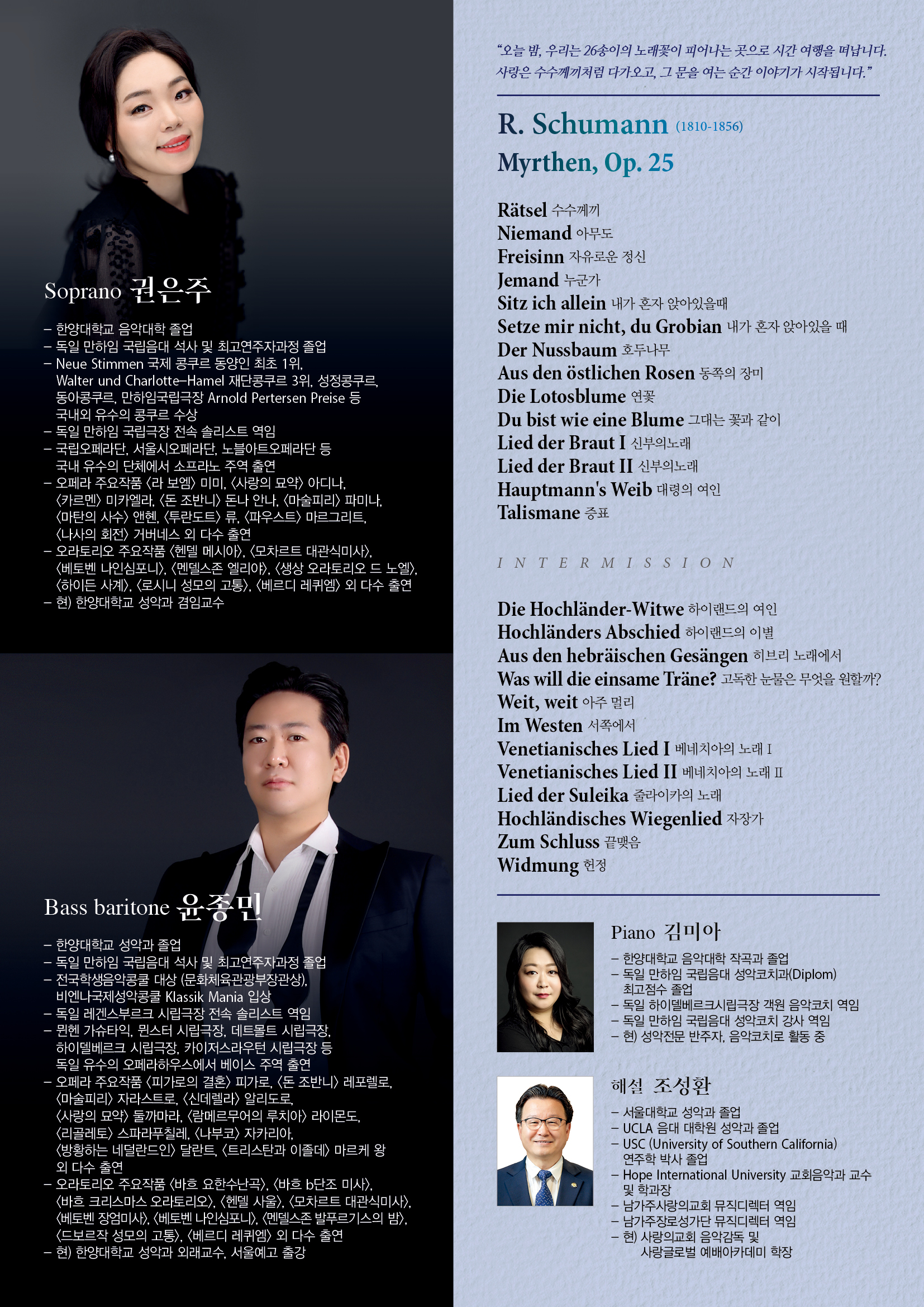 Myrthen, Op.25 "26개의 꽃이 피어나는 밤" 소프라노 권은주 베이스 윤종민
