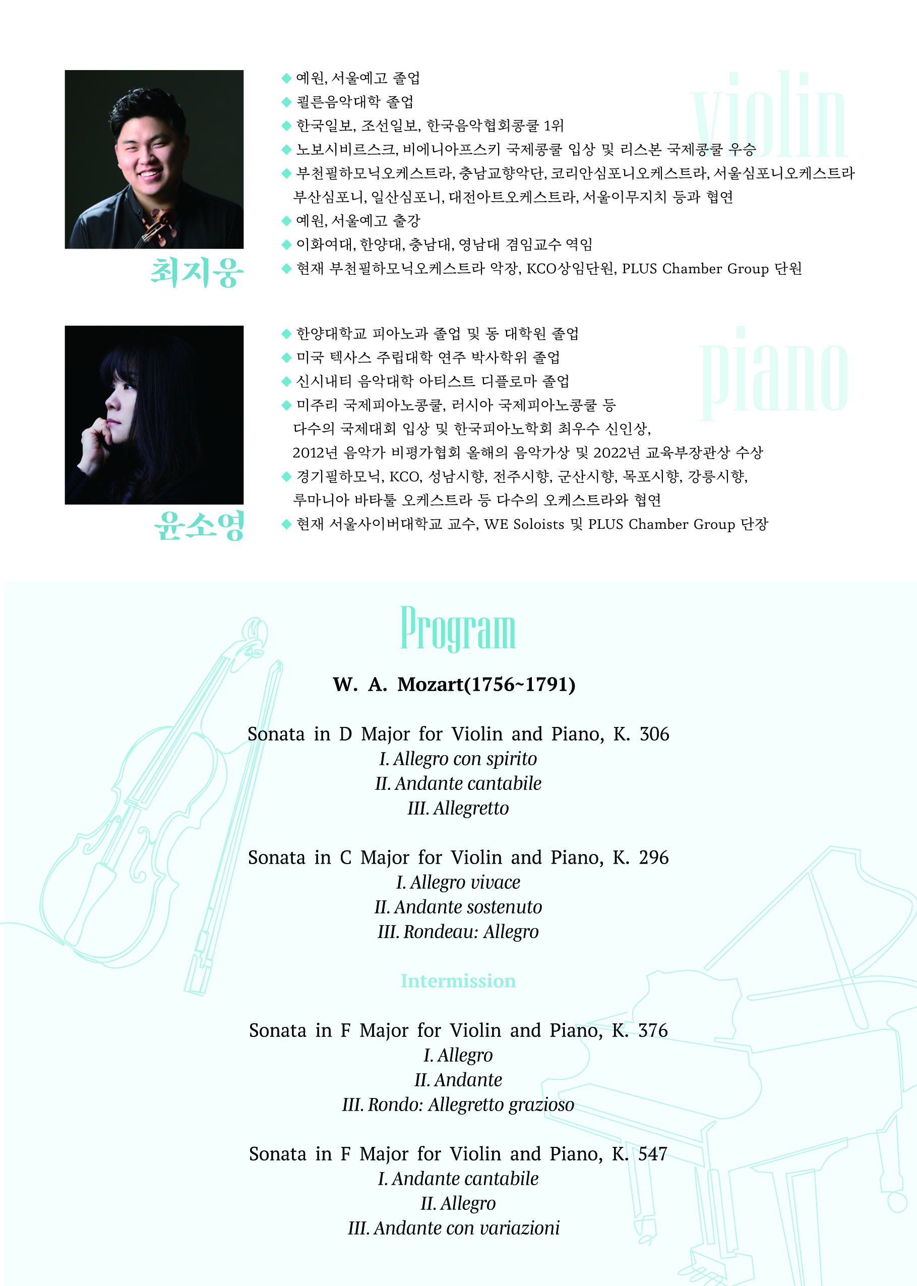 Complete Mozart Sonatas for Piano and Violin 최지웅 윤소영 듀오 연주회 : 모차르트 소나타 전곡 시리즈 Ⅲ