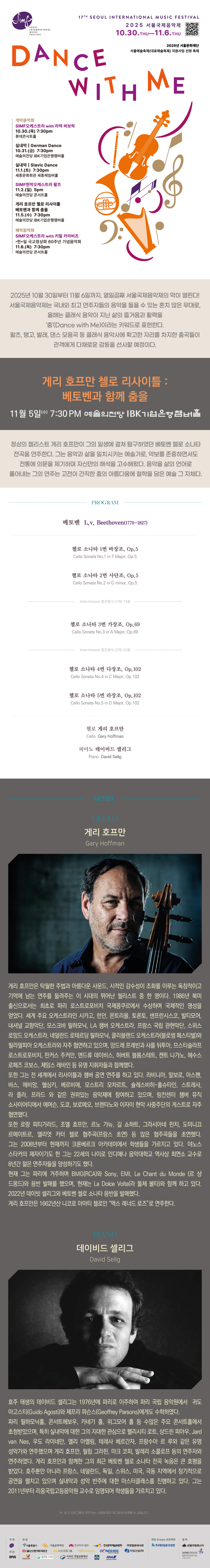 2025 서울국제음악제 ‘게리 호프만 첼로 리사이틀: 베토벤과 함께 춤을’