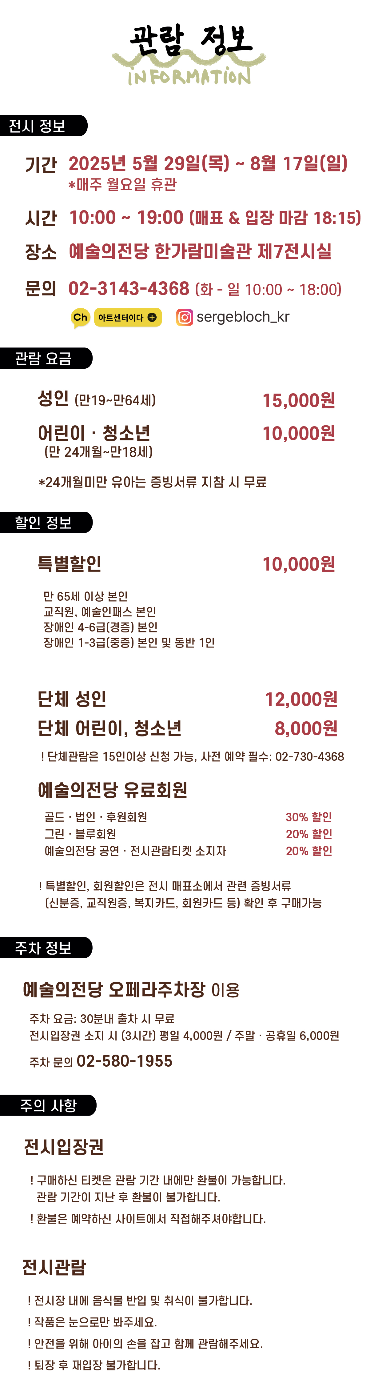 승용차 이용 시 주차장이 혼잡하여 공연장 정시 입장이 어려울 수 있으니, 대중교통을 이용해 주시기 바랍니다.