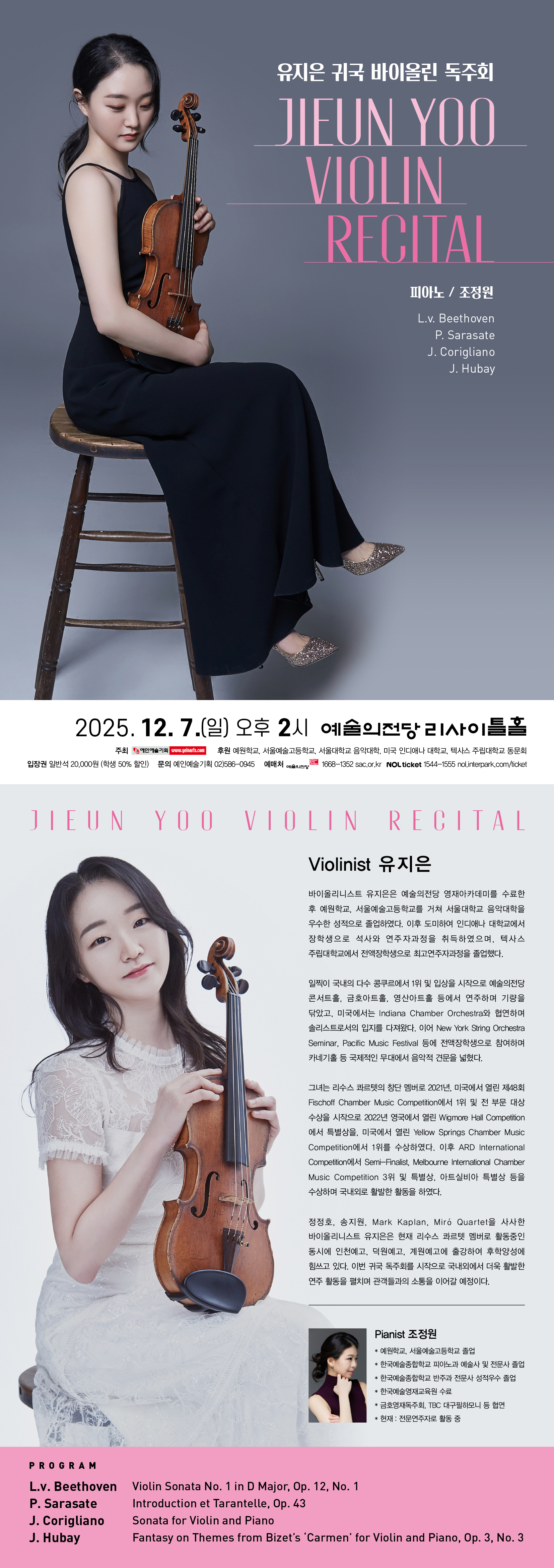 정정호, 송지원, Mark Kaplan, Miró Quartet을 사사한 바이올리니스트 유지은은 현재 리수스 콰르텟 멤버로 활동중인 동시에 인천예고, 덕원예고, 계원예고에 출강하여 후학양성에 힘쓰고 있다. 이번 귀국 독주회를 시작으로 국내외에서 더욱 활발한 연주 활동을 펼치며 관객들과의 소통을 이어갈 예정이다.