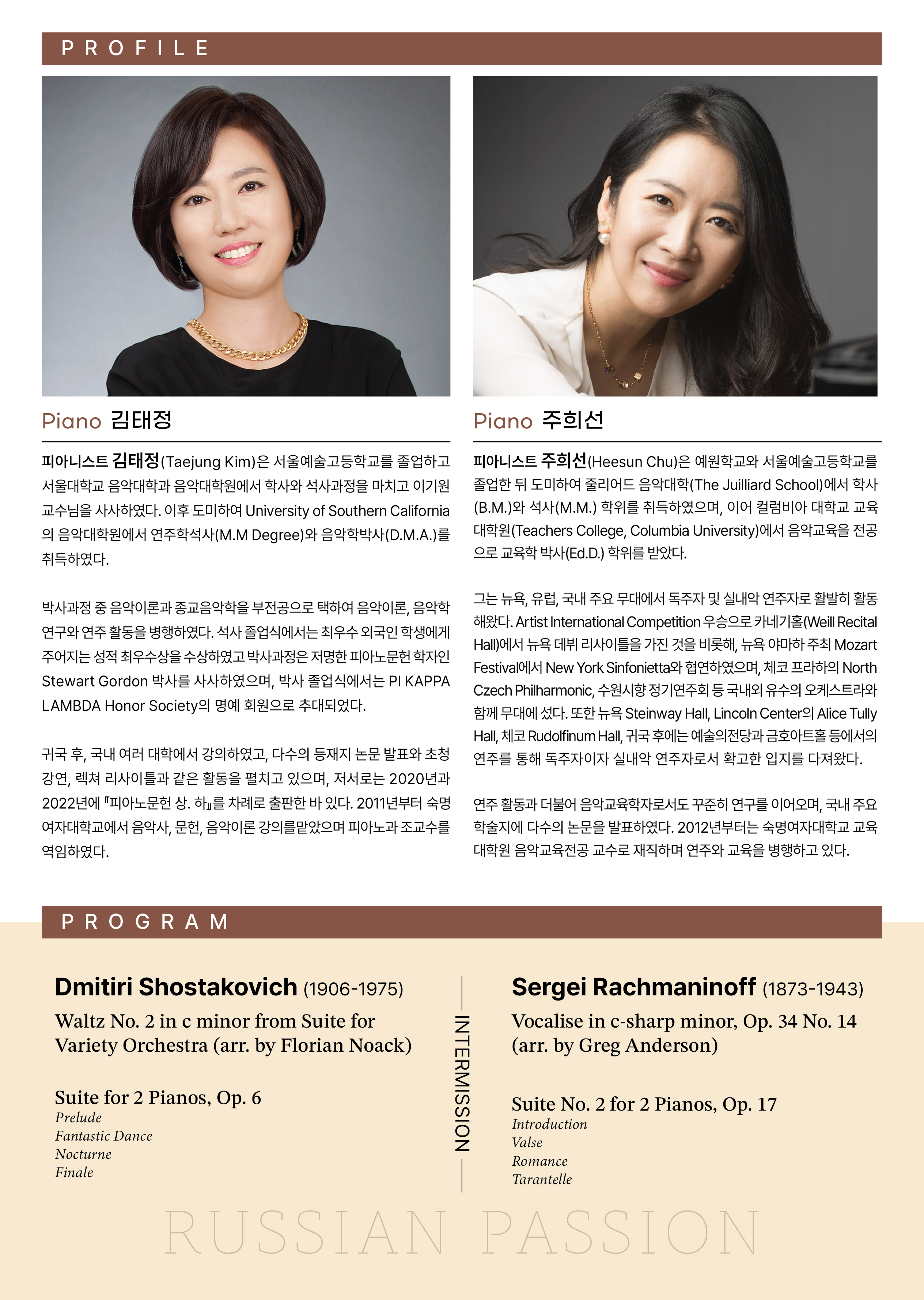 김태정 주희선 피아노 듀오 리사이틀 - Russian Passion에 대한 관람평을 적어주세요.