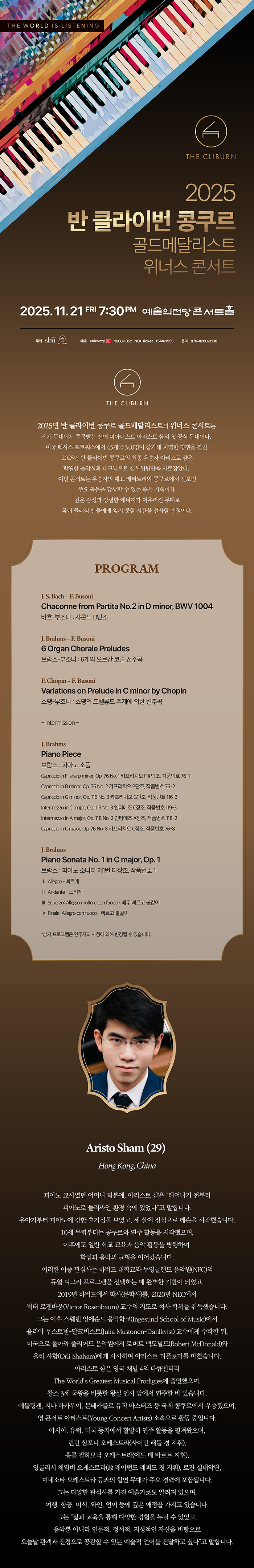아리스토 샴 피아노 리사이틀 2025 반 클라이번 콩쿠르 골드메달리스트 위너스 콘서트 : 아리스토 샴 피아노 리사이틀