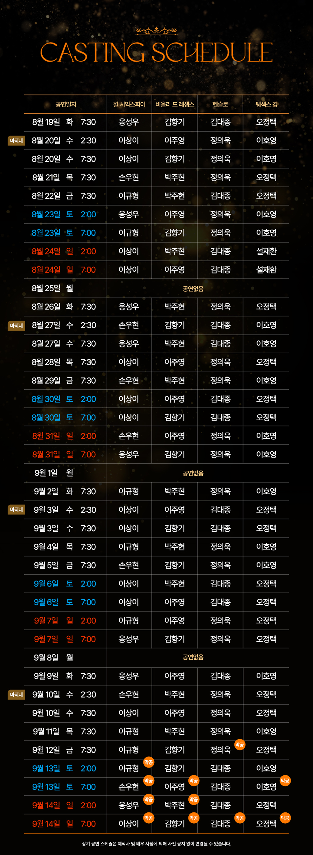 ◈ 불법 거래(프리미엄 티켓 판매, 티켓 양도 사기)로 발생하는 불이익에 관하여 제작사 및 예매처에서는 책임을 지지 않습니다. 반드시 정식 예매처를 통해 예매해 주시기 바랍니다.