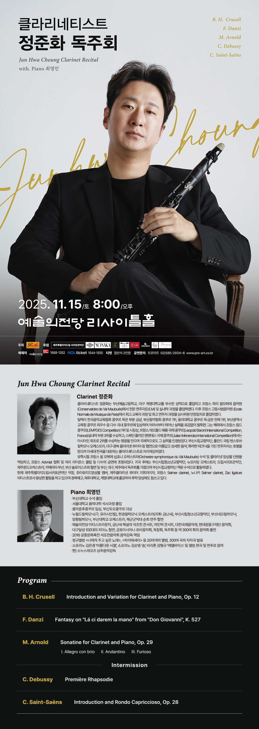 클라리네티스트 정준화 독주회에 대한 관람평을 적어주세요.