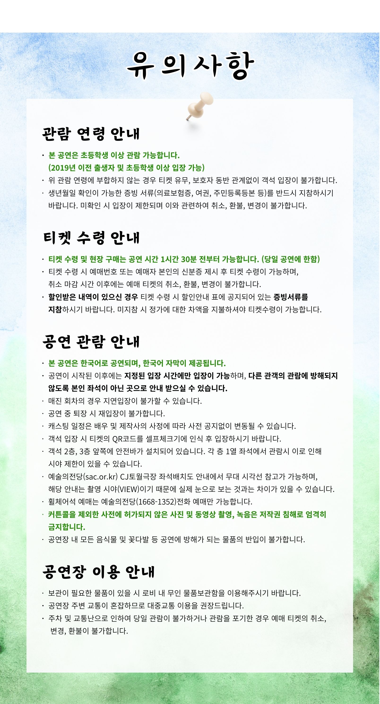 [2026년 공연 관람일 기준] 2019년 이전 출생자 및 초등학생 이상 입장 가능