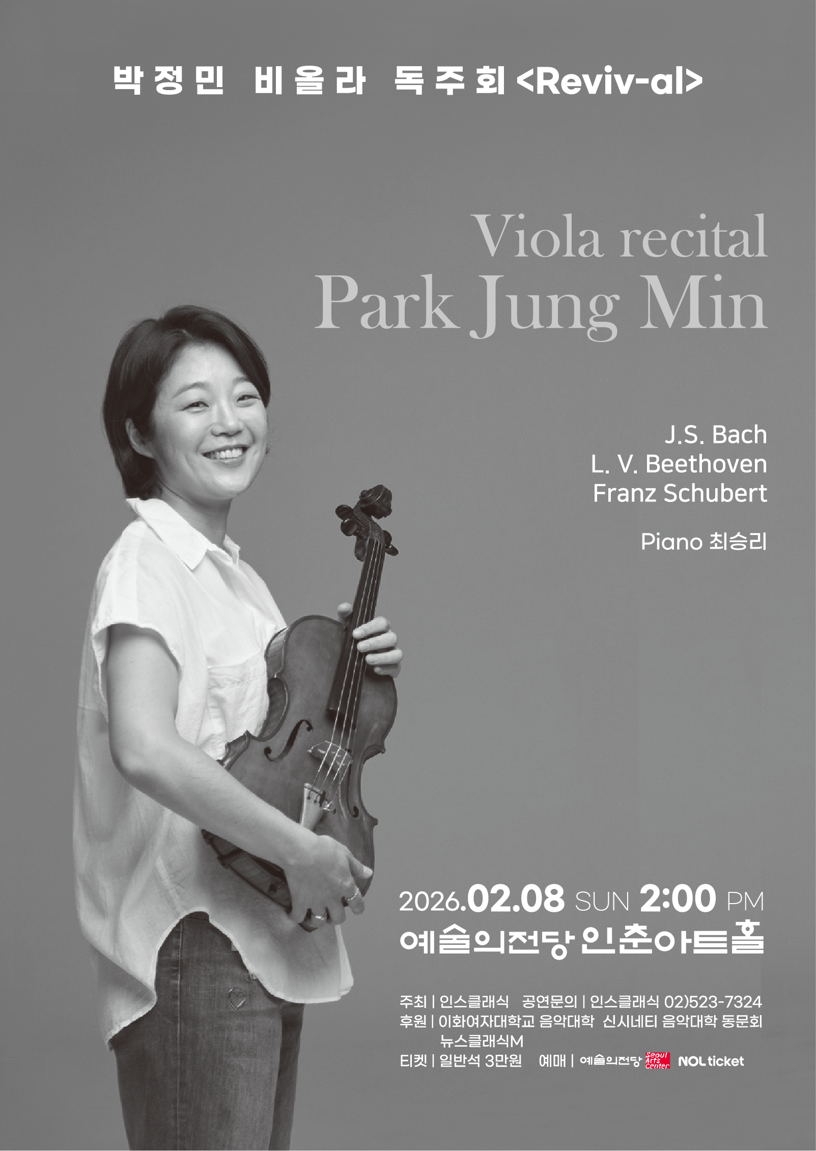 비올리스트 박정민은 깊고 따뜻한 음색, 그리고 섬세한 앙상블 감각으로 관객과 자연스럽게 호흡하는 동시에, 솔리스트로서는 곡의 흐름을 주도하며 진솔한 해석과 밀도 있는 표현으로 무대를 이끄는 연주자이다.