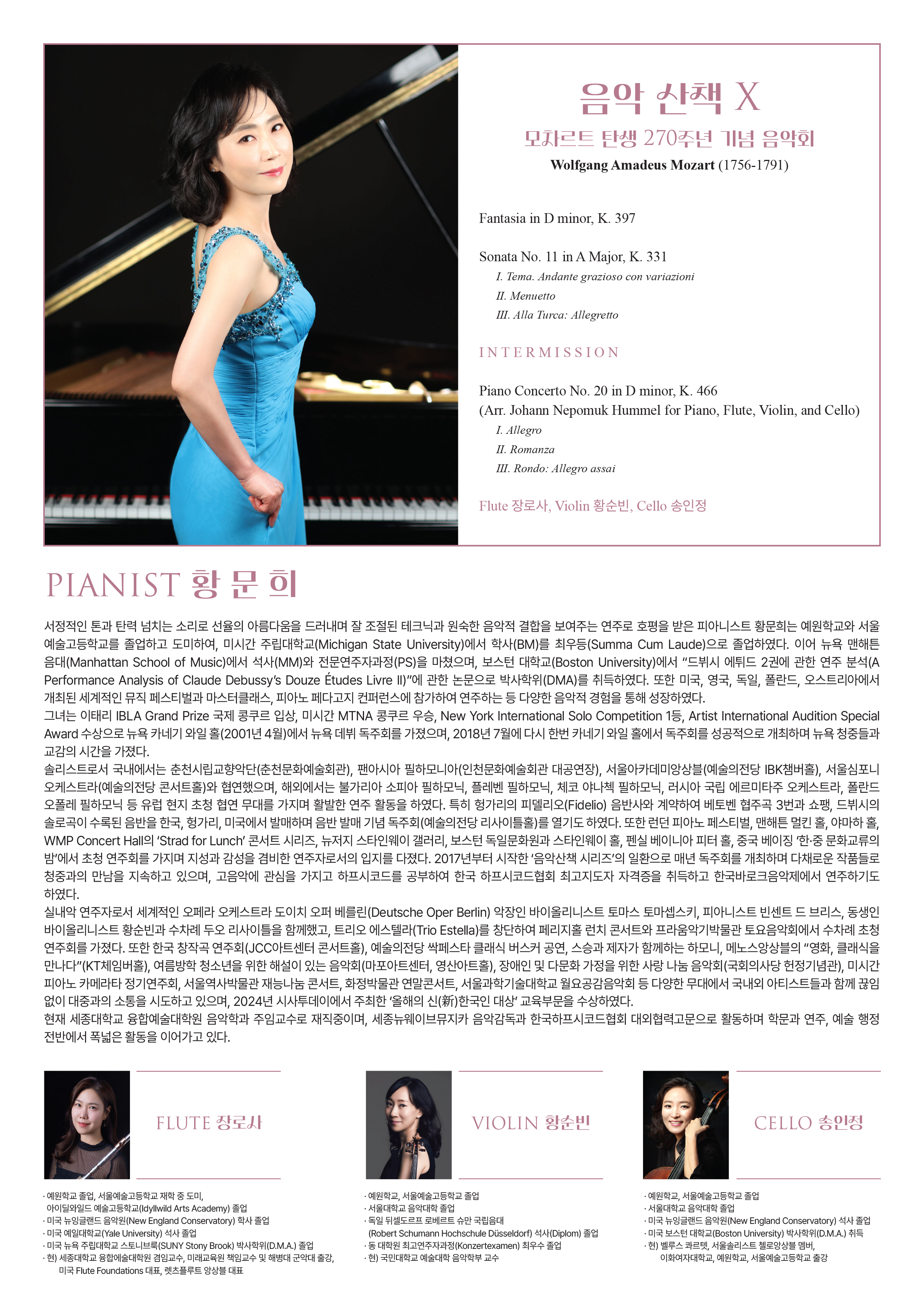 음악산책 X: 모차르트 탄생 270주년 기념 음악회 황문희 피아노 독주회