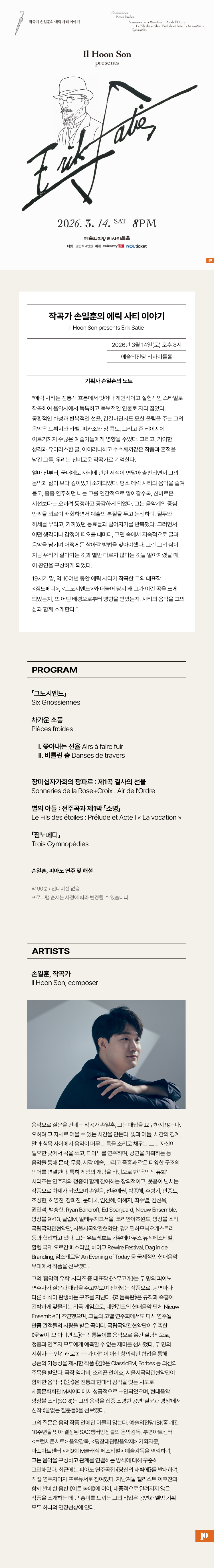작곡가 손일훈의 에릭 사티 이야기에 대한 관람평을 적어주세요.