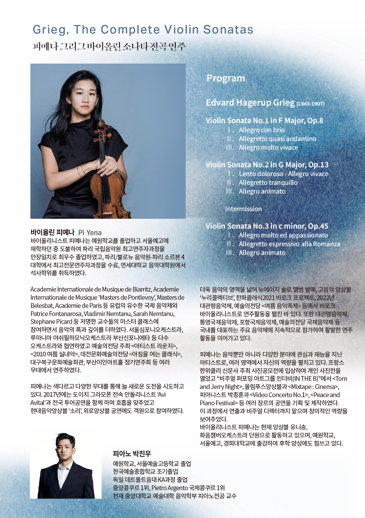 피예나 그리그 바이올린 소나타 전곡 연주에 대한 관람평을 적어주세요.