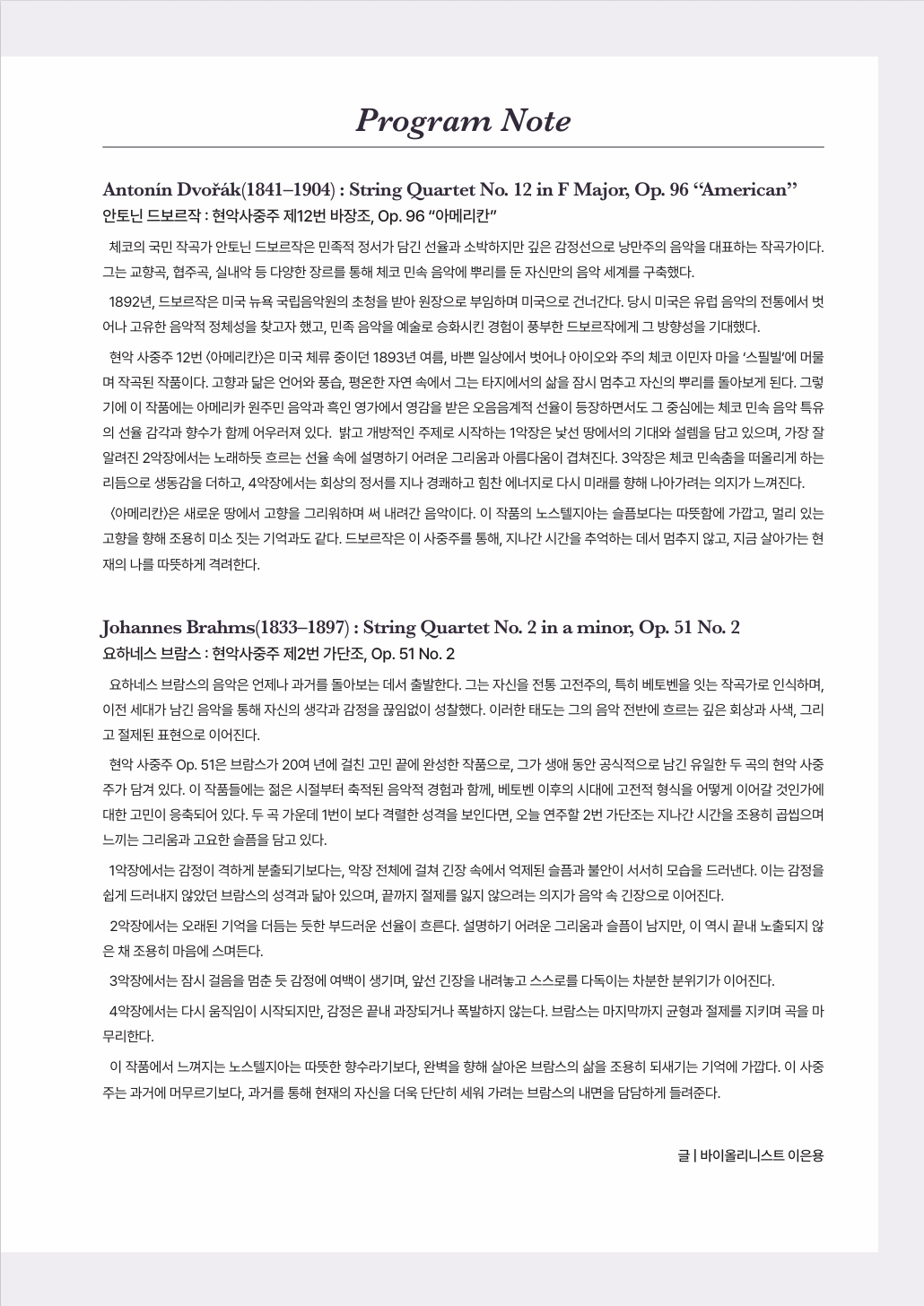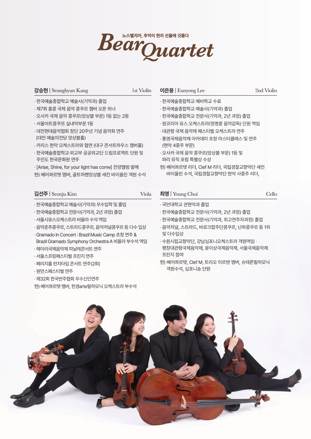 • 2026. 02. 08 –제 3회 베어콰르텟 정기연주 예정 (at 서울 예술의전당 리사이틀홀)