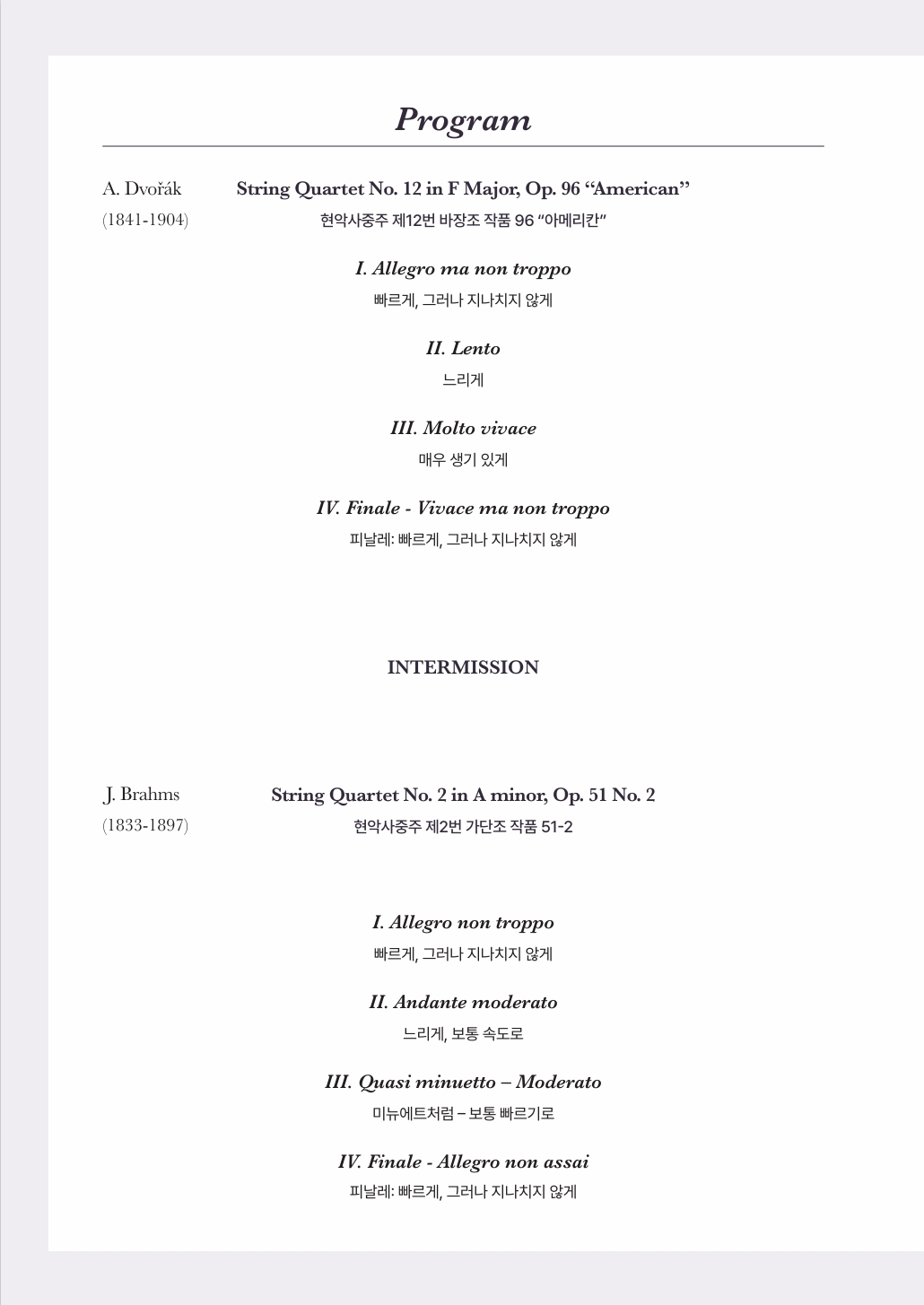 안토닌 드보르자크 현악사중주 제 12번 F장조 작품 96 "아메리칸'