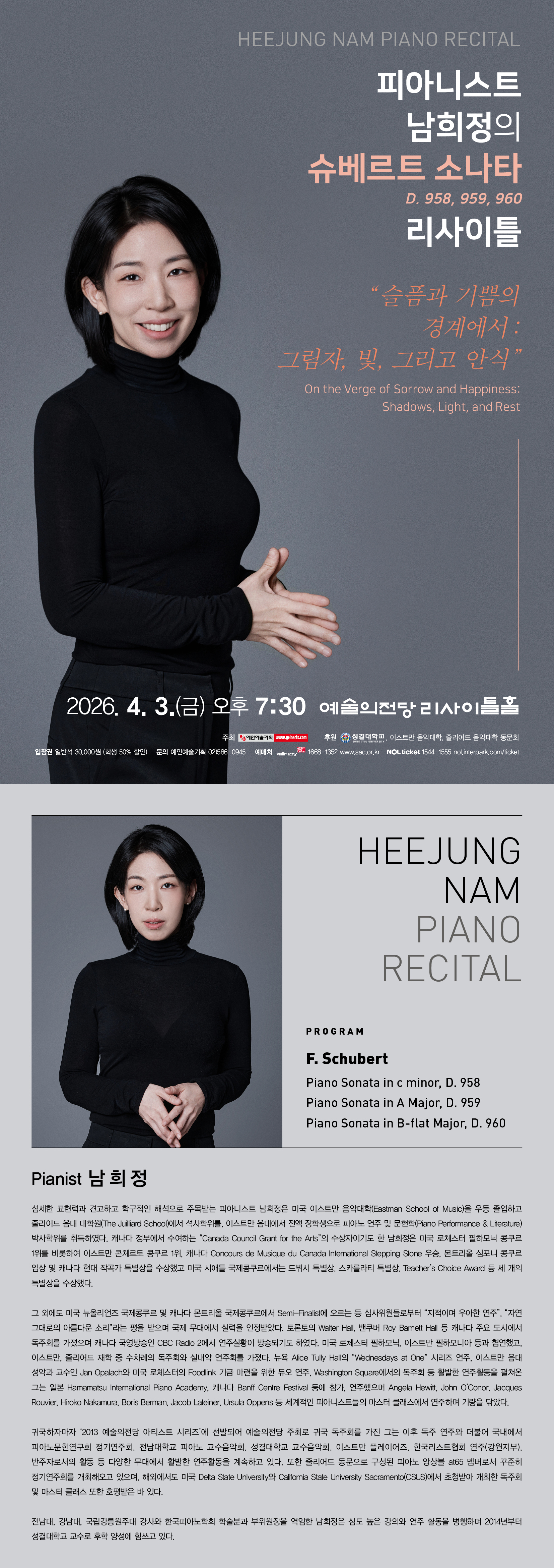 피아니스트 남희정의 슈베르트 소나타 리사이틀 에 대한 관람평을 적어주세요.