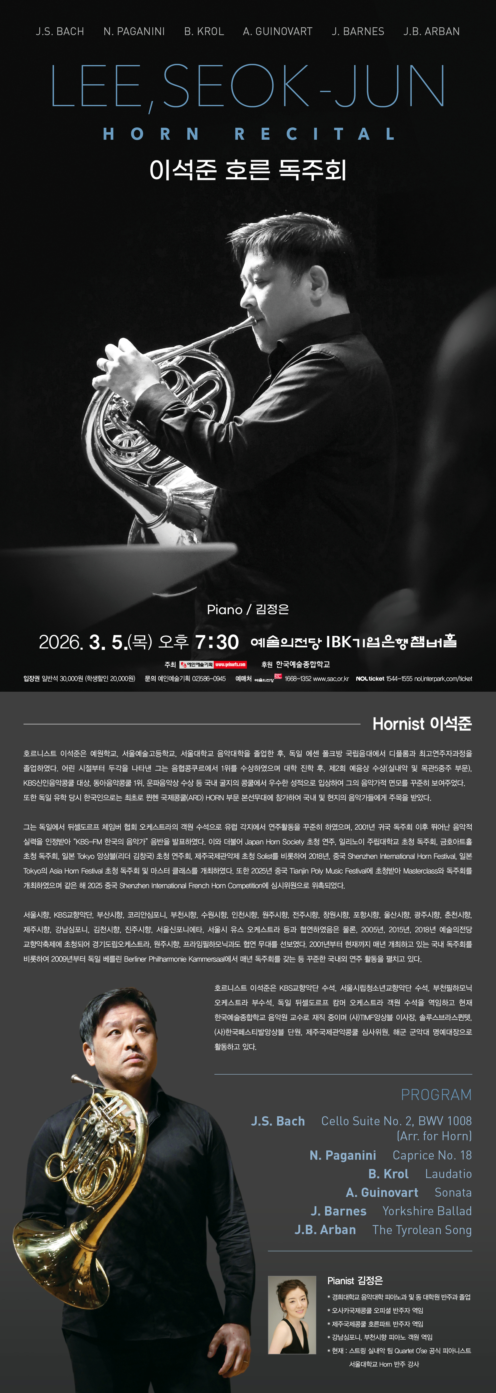 이석준 호른 독주회에 대한 관람평을 적어주세요.