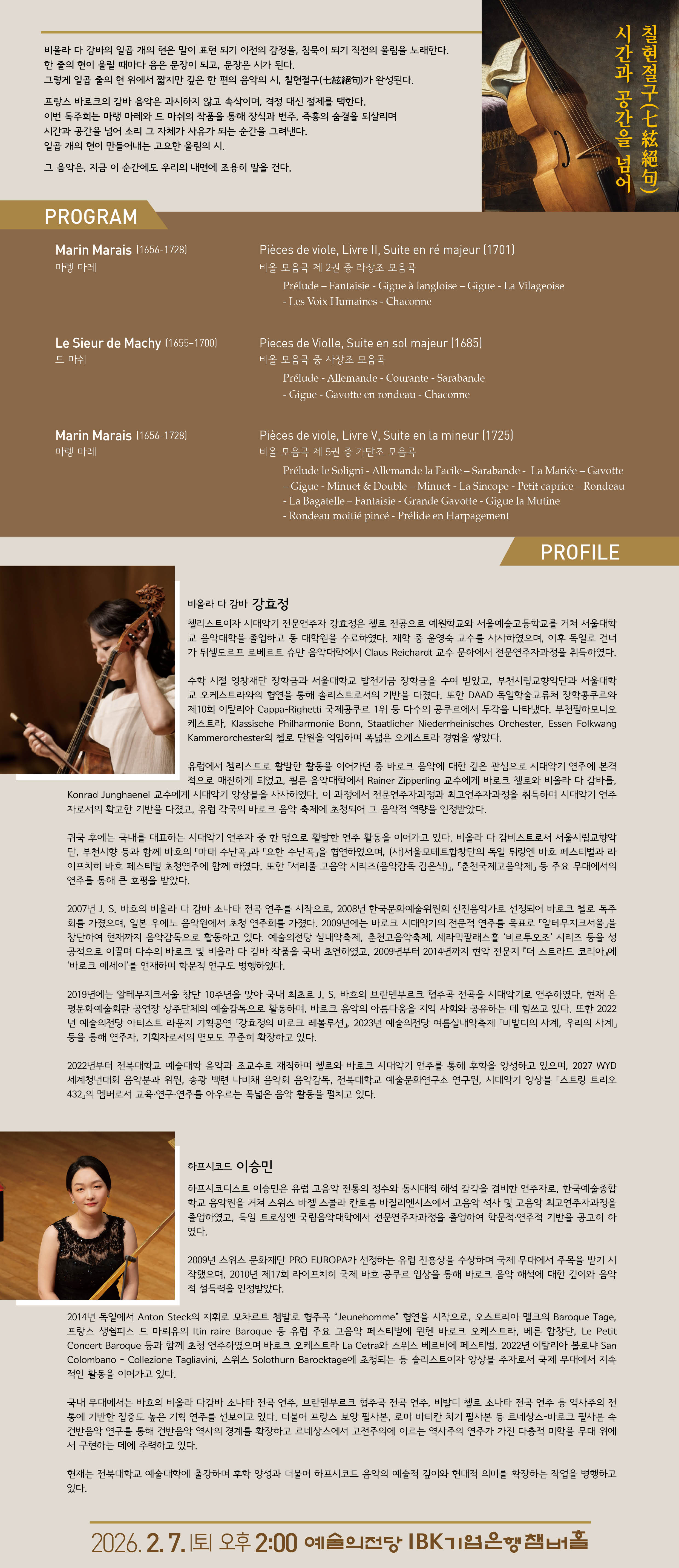 이번 독주회는 마랭 마레와 드 마쉬의 작품을 통해