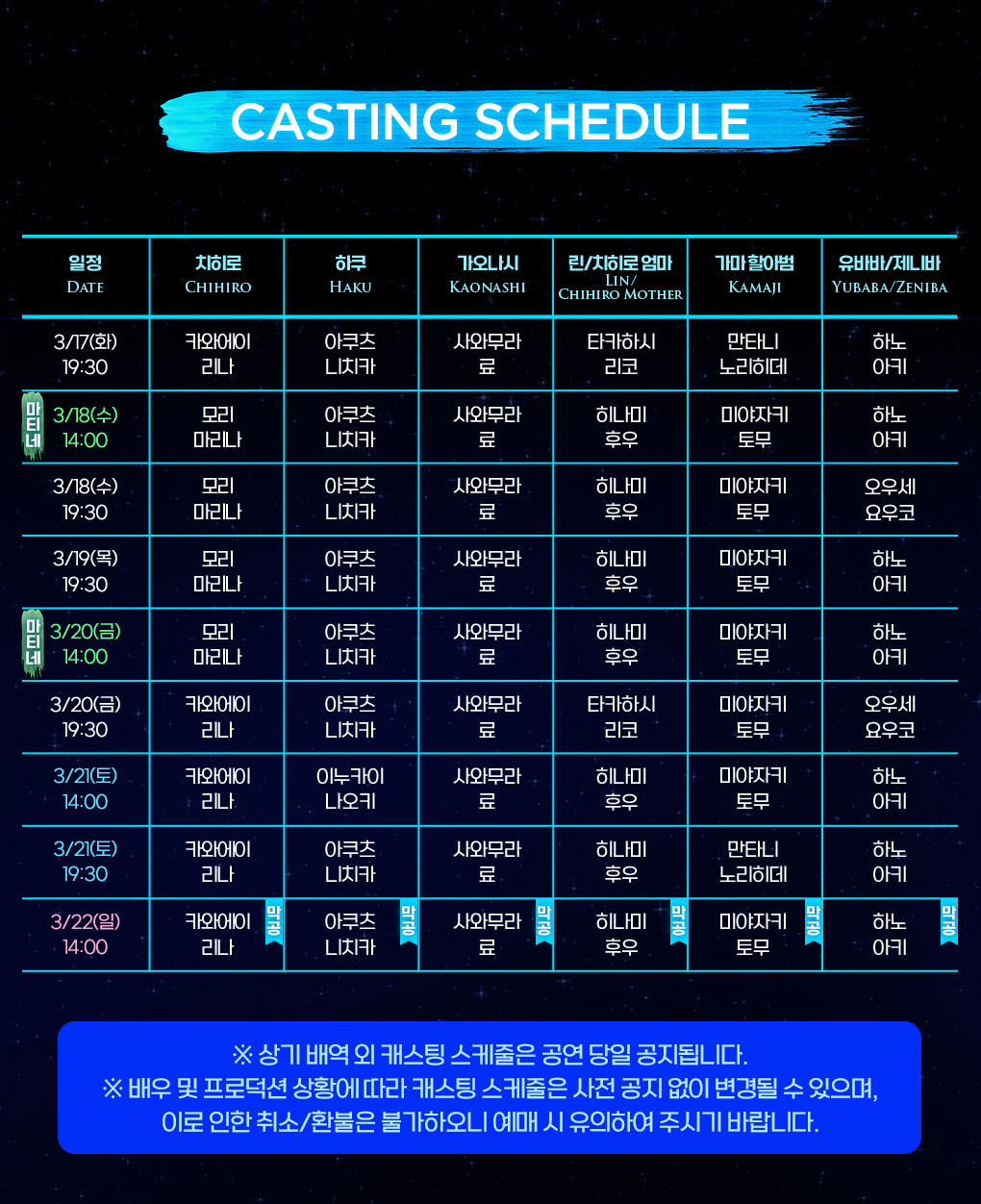 공연은 원어(일본어)로 진행되며 자막기를 통해 한국어 자막이 서비스됩니다.