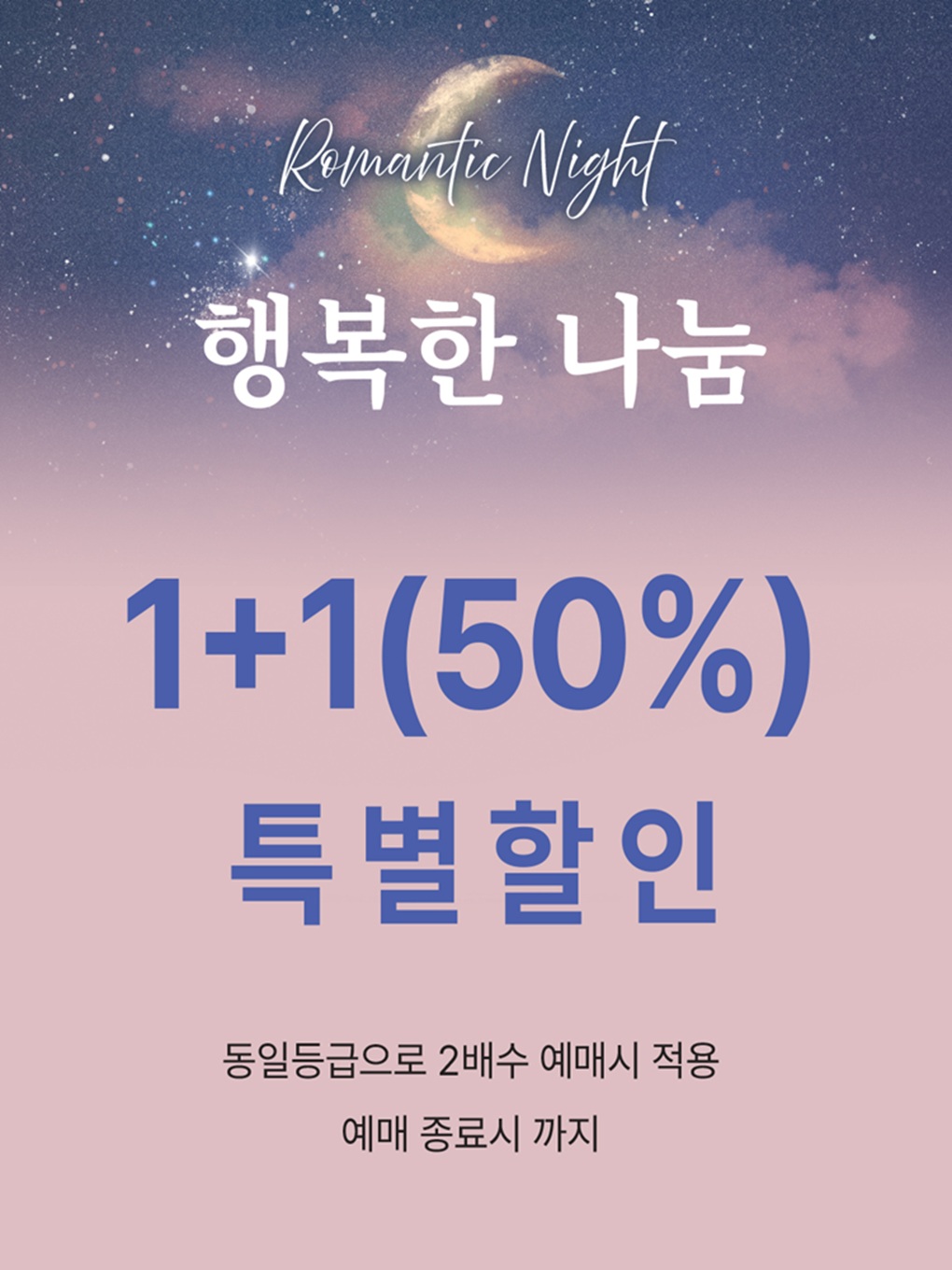 - 행복한 나눔 1+1(50%) 특별할인 / 동일등급으로 2배수 예매시 적용 가능 / 예매 종료시 까지