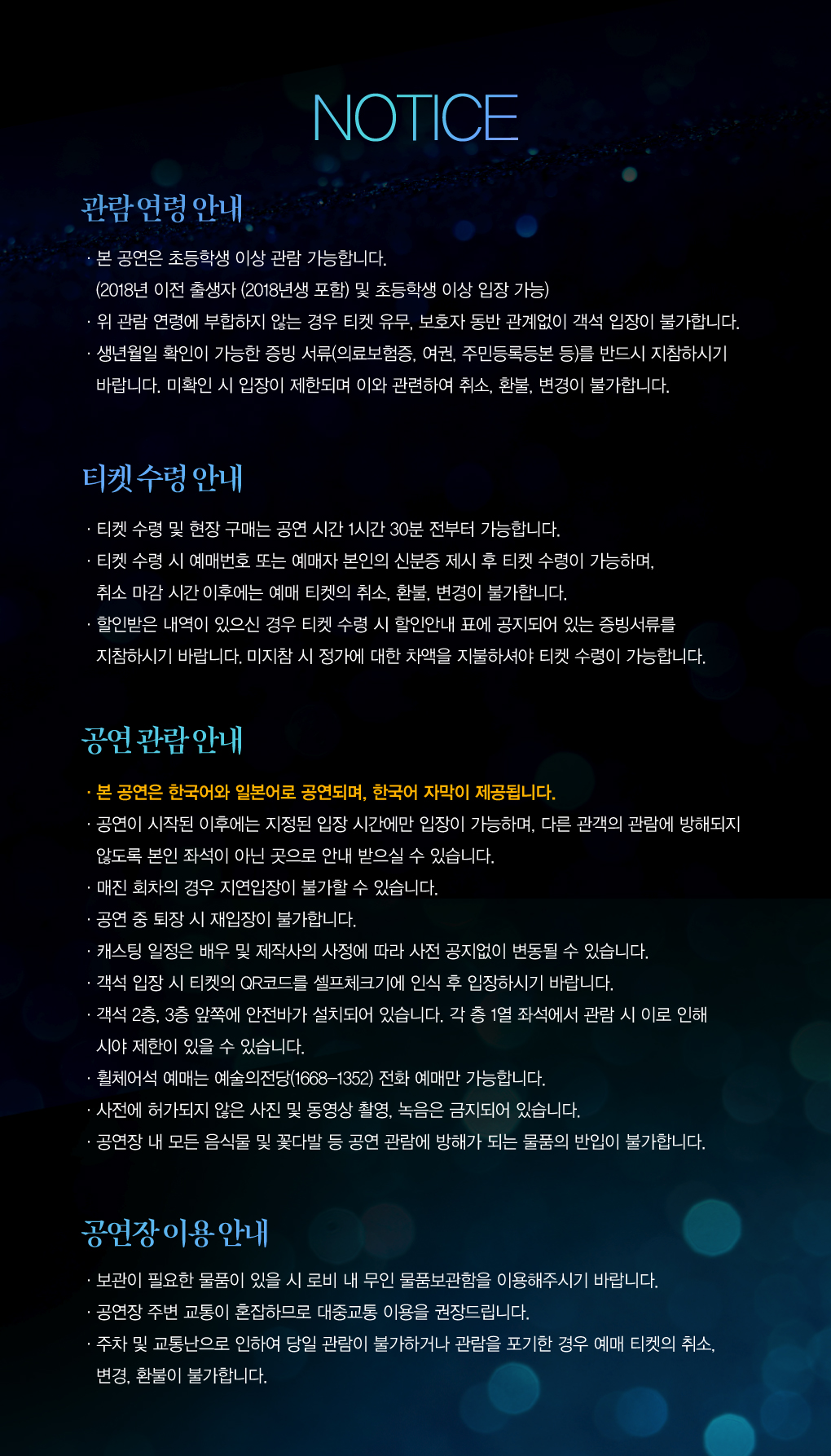 * 본 공연은 한국어와 일본어로 공연되며, 한국어 자막이 제공됩니다.