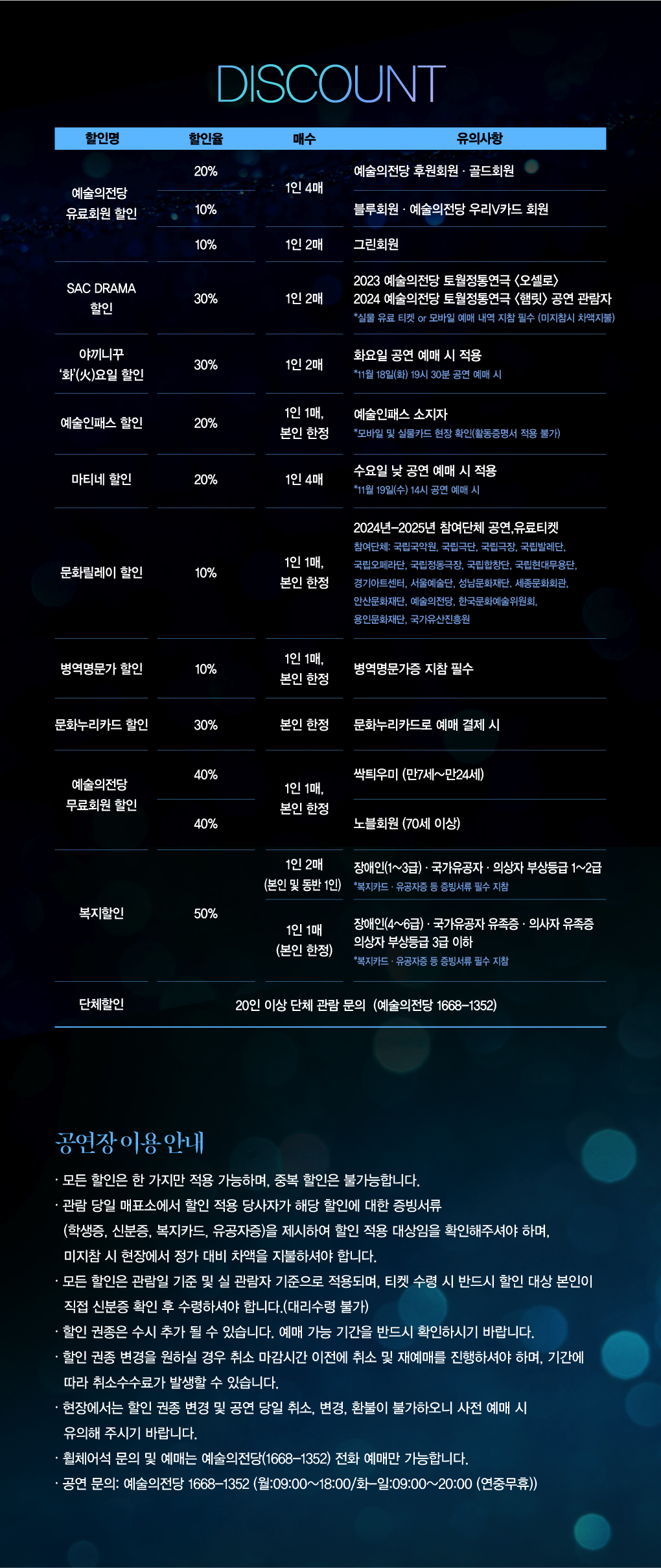 대관공연 | 환불 불가 | 관람일 1일 전까지 가능 |