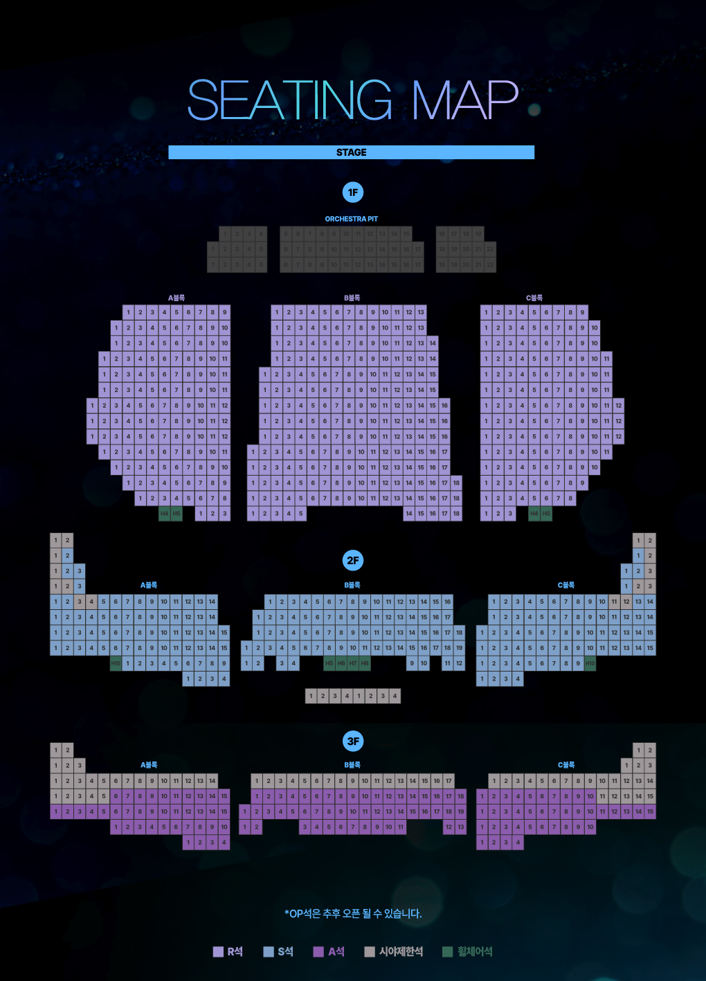 각 좌석도에서 좌석 버튼을 클릭하시면 해당 좌석에서 촬영한 무대시각선을 보실 수 있습니다.