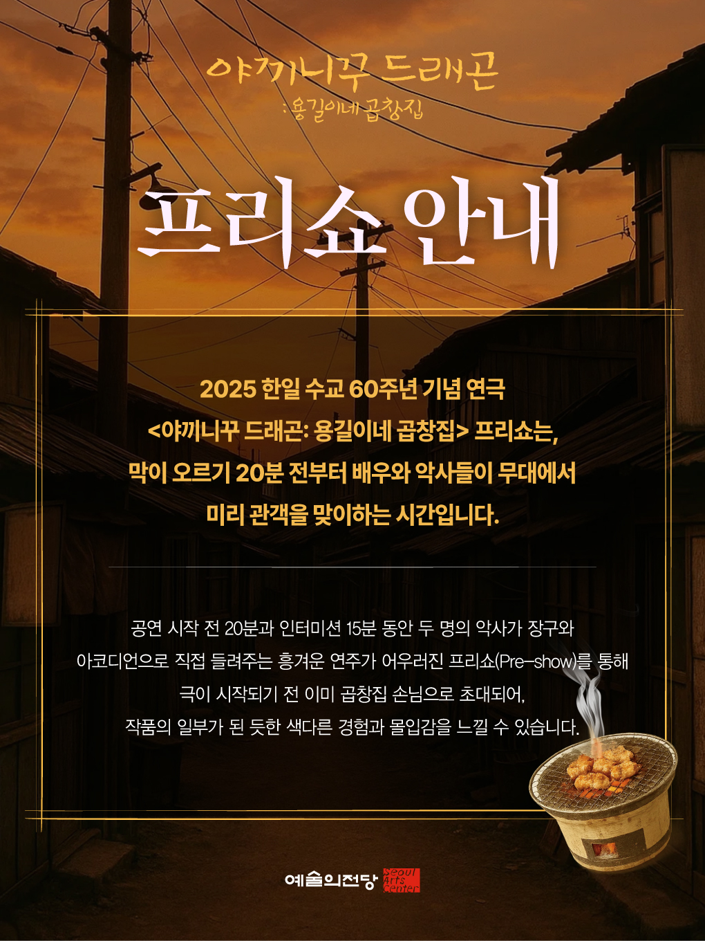 2025 한일 수교 60주년 기념 연극 <야끼니꾸 드래곤: 용길이네 곱창집>에 대한 관람평을 적어주세요.