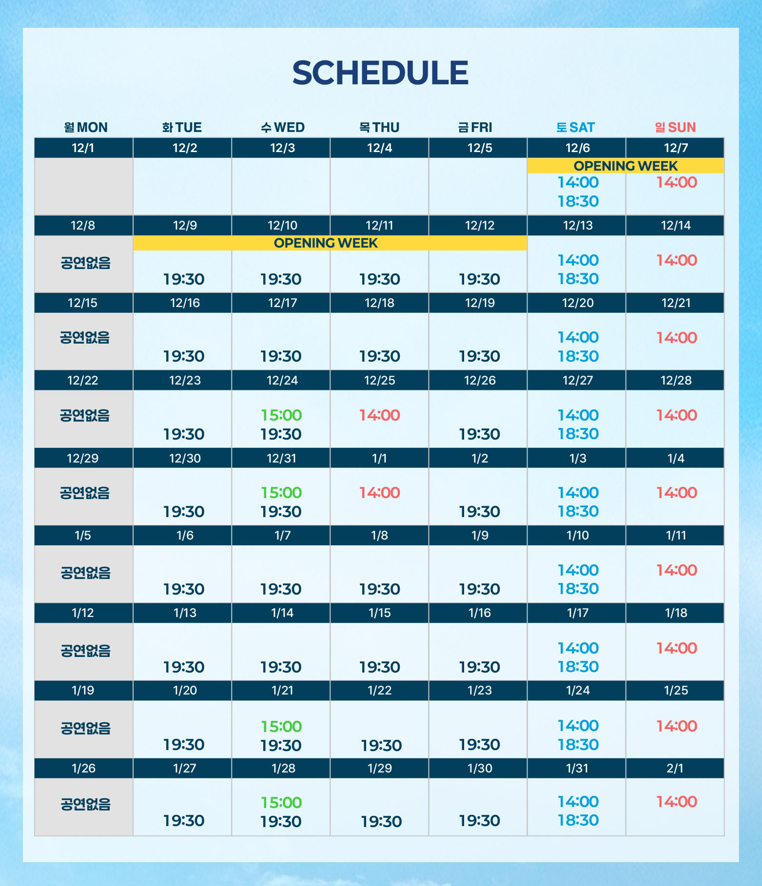 * 12월 26일(금) 7시 30분 회차는 '2025 야간공연관람권 사업'으로 인하여 일부 좌석이 판매 마감되었습니다. 예매 시 참고 부탁드립니다.