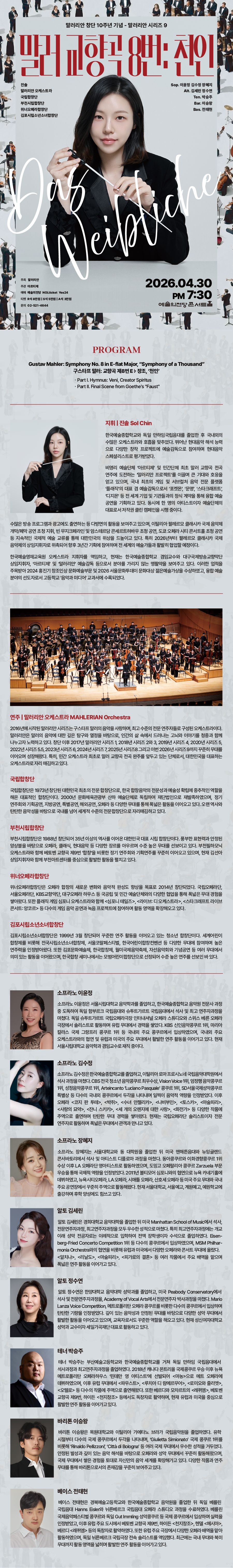 Solists | 소프라노 이윤정, 소프라노 김수정, 소프라노 장혜지, 알토 김세린, 알토 정수연, 테너 박승주, 바리톤 이승왕, 베이스 전태현