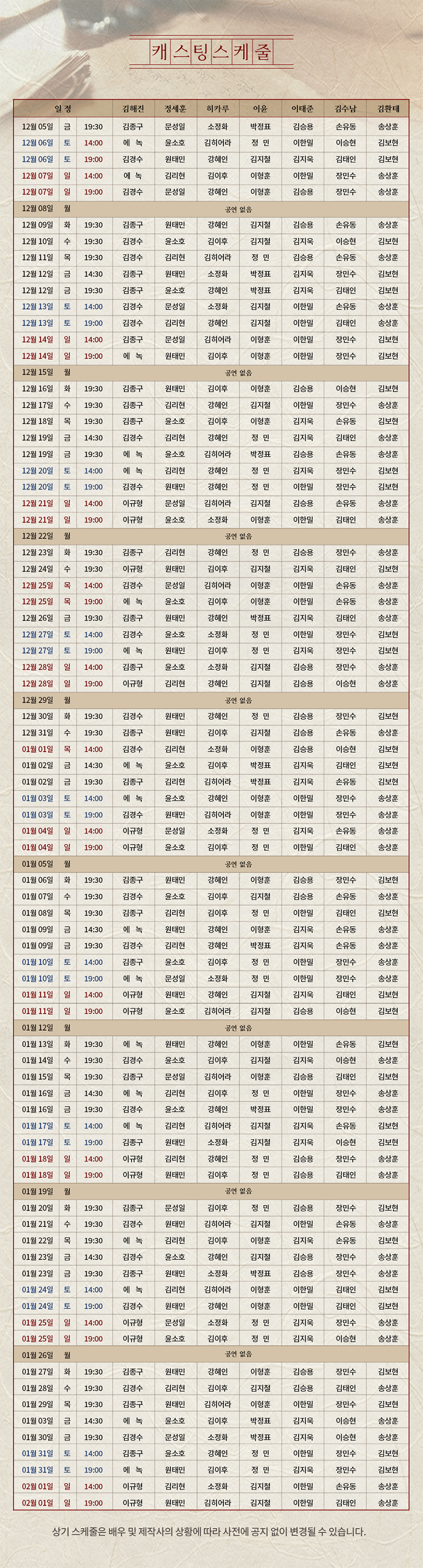 - 3차 티켓 오픈 공연 기간 : 2026년 1월 13일(화) – 2026년 2월 1일(일) 〈총 27회〉