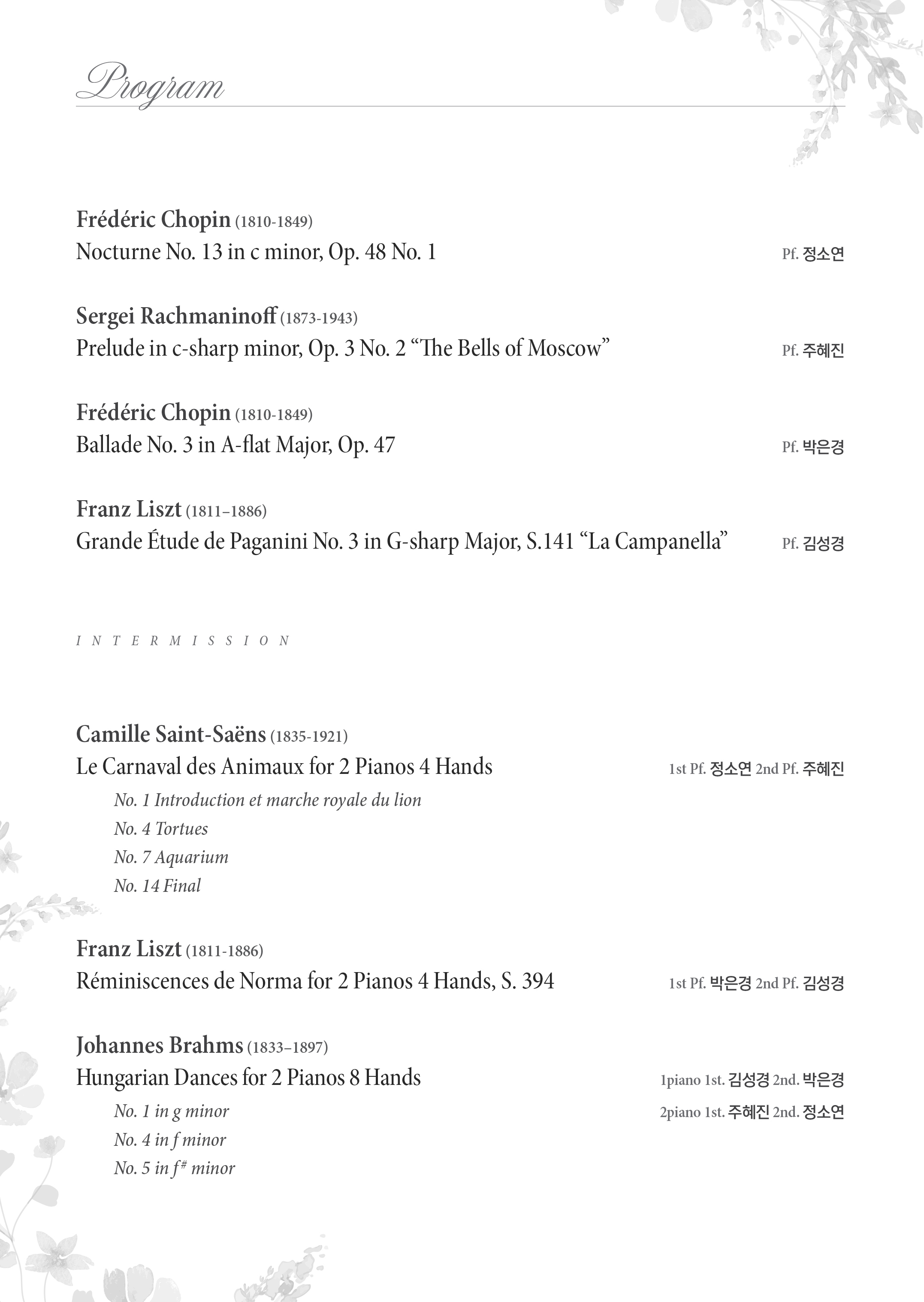 Le Carnaval des Animaux for 2 Pianos 4 Hands 1st Pf. 정소연 2nd Pf. 주혜진