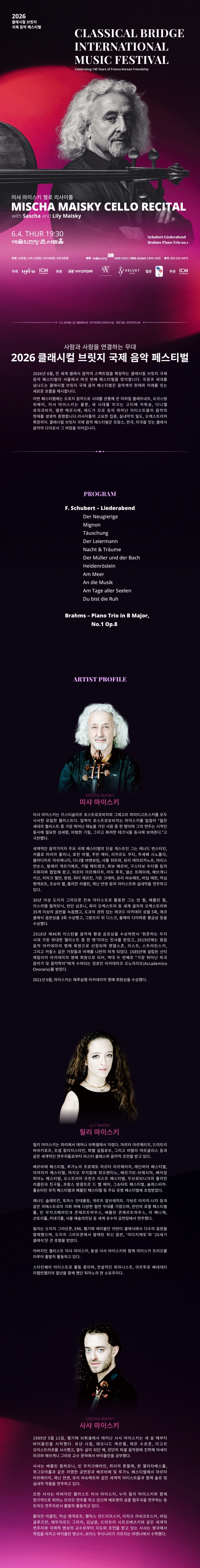 with Sascha and Lily Maisky 2026 클래시컬 브릿지 국제 음악 페스티벌 - 미샤 마이스키 첼로 리사이틀